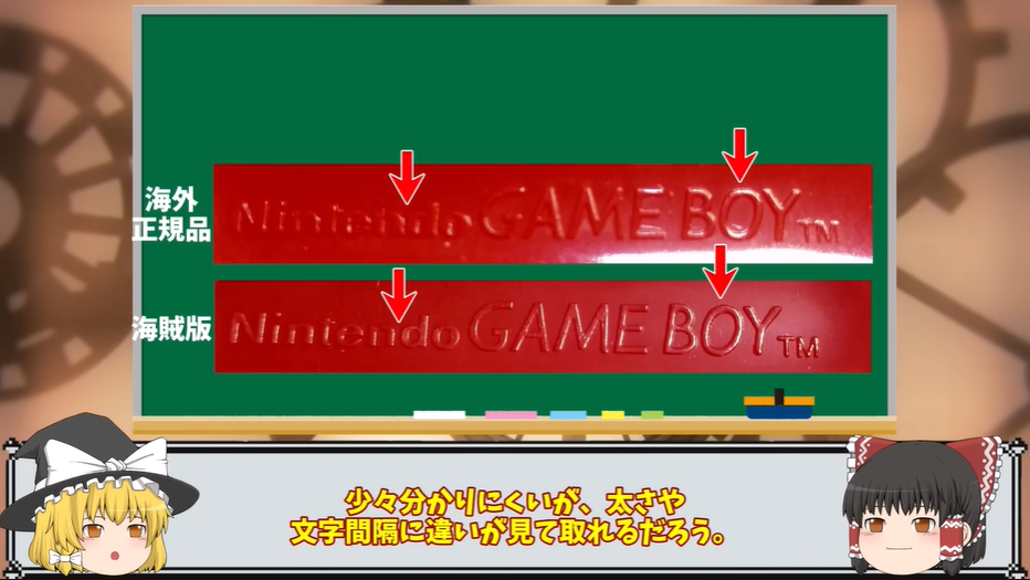 ソフトの表面に描かれているが、このフォントや文字の幅が正規品と海賊版で異なります。これはポケカなどのカードでもよくある違いですね。