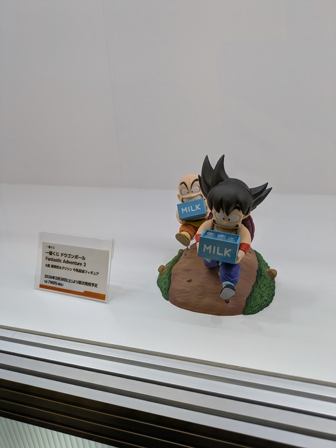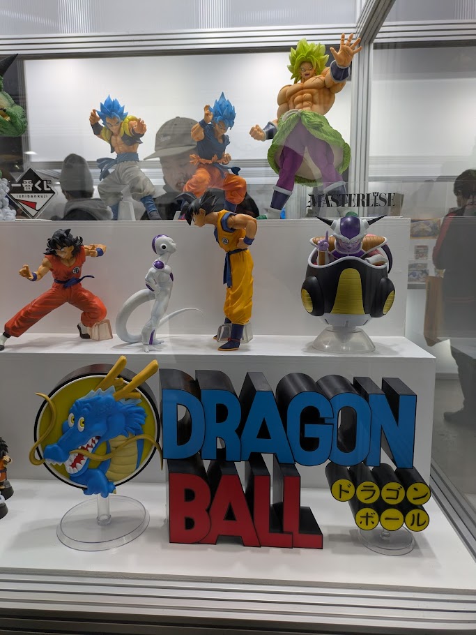 ドラゴンボールのフィギュアや昔のグッズ、これから発売の一番くじグッズなども飾られていました!
