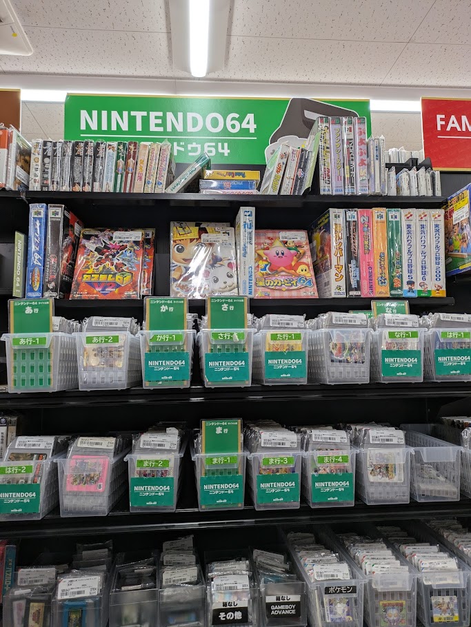 このように、ファミコンや64などのソフトがズラッとならんでいます。