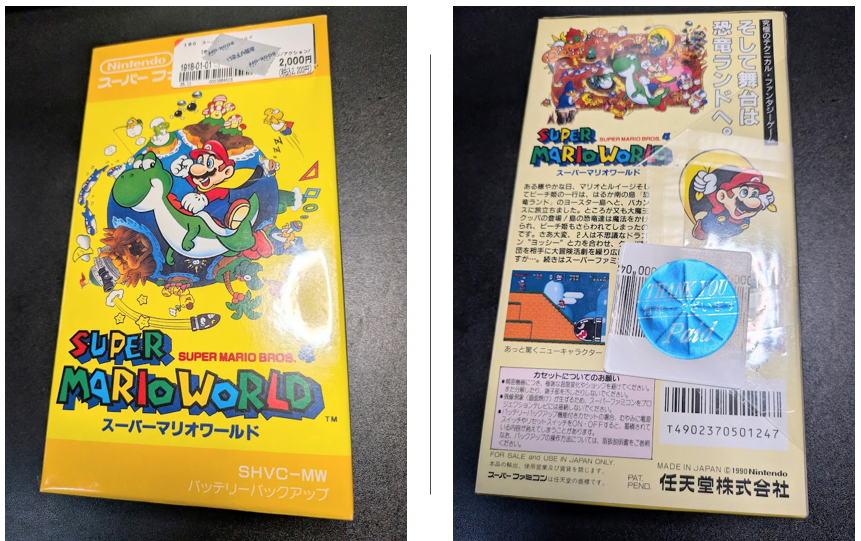 コチラは、任天堂から1990年11月21日に発売されたスーパーファミコン用アクションゲームで、多くの人が知っている超人気ゲームですね。